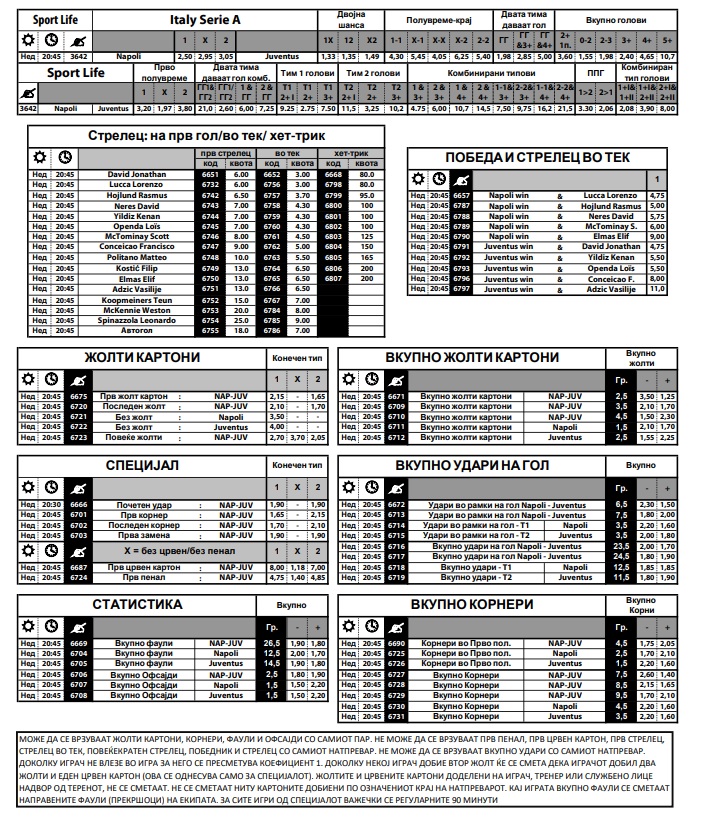 „Специјалот“ во Sport Life секако е подготвен, а во очи паѓа квотата (9.00) за триумф на Наполи, а стрелец против Јувентус да биде македонскиот репрезентативец Елиф Елмас.