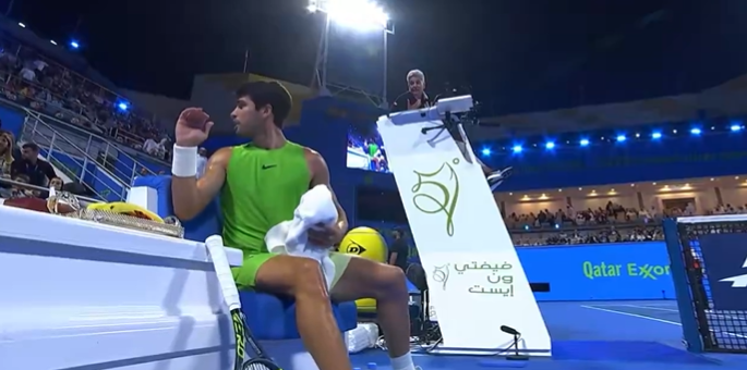 „Карлосе го сопрев часовникот додека не дојде до делот каде што е пешкирот. Тогаш започнаа да течат 25 секунди, кога дојде до пешкирот“, реагираше судијката Чичак, а потоа Алкарас збесна и почна да пцуе.