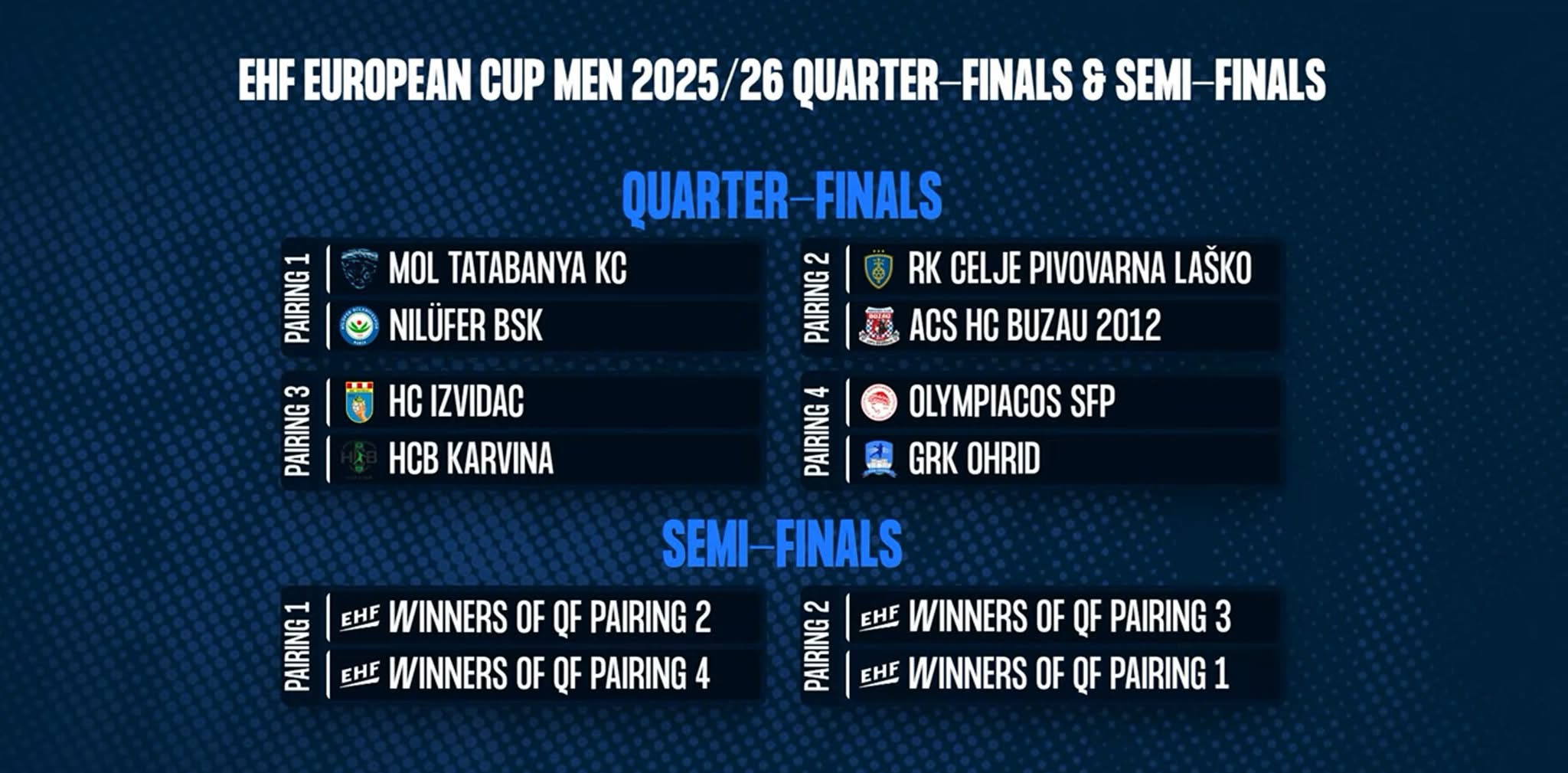 Грчкиот Олимпијакос е противникот на Охрид во четвртфиналето од Европскиот ракометен куп на ЕХФ. Тоа значи само едно – ќе има вистински спектакл крај езерото.