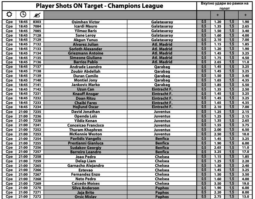 За играта „удари во рамки на гол“ има околу стотина фудбалери со две опции: најмалку еден или најмалку два шута кон противничкиот гол.