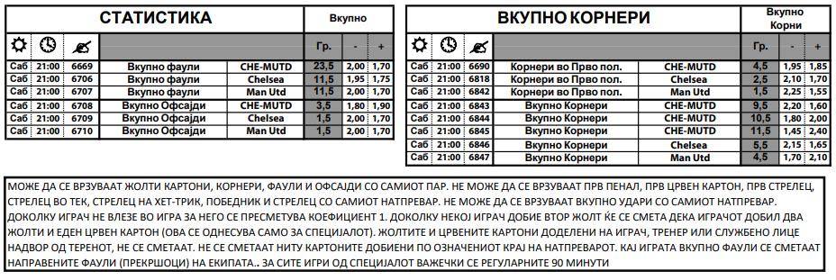 Тука се и статистичките игри за бројот на шутеви во рамките на голот, бројот на изведени корнери, добиени жолти картони, направени фаули, „уловени“ офсајд позиции…
