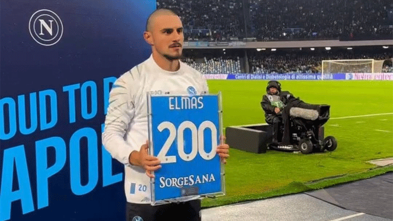 Македонскиот фудбалски репрезентативец Елиф Елмас одигра 20-тина минути во победата на Наполи над Аталанта, и тоа беше негов 200-ти настап во дресот на актуелниот италијански првак.