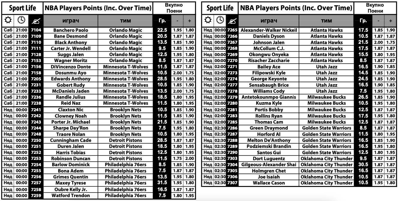 Дел од богатата НБА понуда во Sport Life се и кошаркарите со најпопуларната игра меѓу прогнозерите – „плус-минус“ на поени. Комплетната понуда може да ја најдете на следниов ЛИНК.