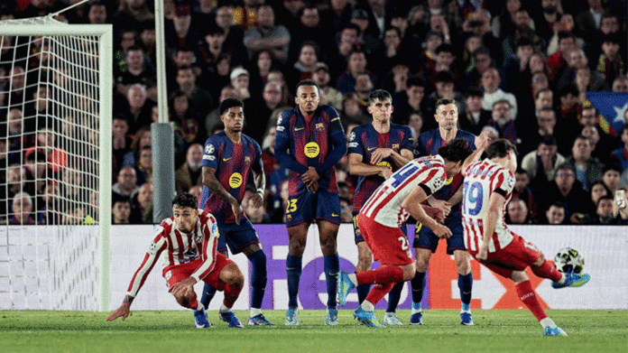 Атлетико Мадрид има изненадувачко водство од 1-0 на гостувањето кај Барселона во ова шпанско четвртфинале на Лигата на шампионите, благодарение на фантастичниот гол од слободен удар на Хулијан Алварес во финишот на првиот дел.