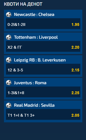 Привлечна квота од 2.25 има за играта дека ќе паднат 1-3 гола во прво и барем еден гол во второ полувреме на дербито Јувентус – Рома.