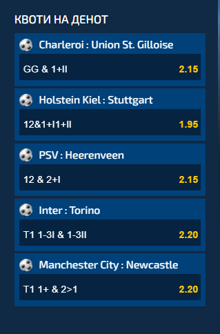 Последната квота на денот е за Манчестер сити – Њукасл, и тоа 2.20. Играта е Сити да даде гол и второто полувреме да биде поефикасно од првото.