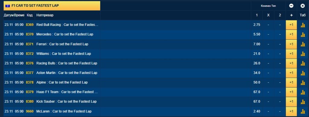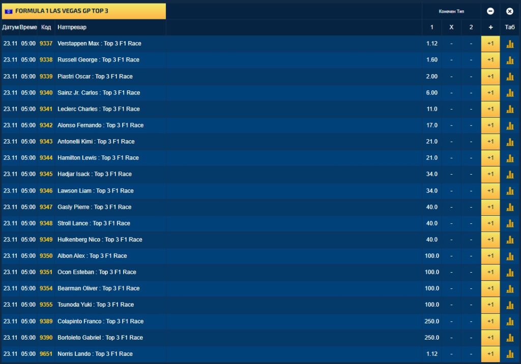 Возбудата ќе се зголеми дополнително со одличната понуда во Sport Life за трката за во Лас Вегас. Можете да се обложите на победник, пласман во Топ 3, најбрз круг, најбрз болид, да одиграте на дуели…