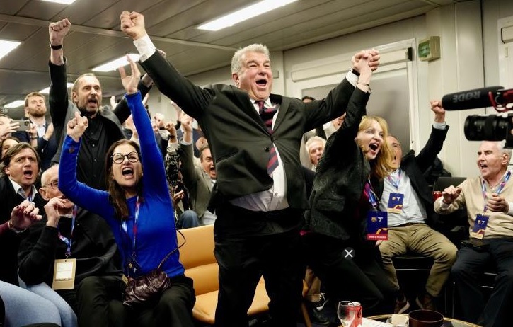 Во штабот на Жоан Лапорта избувна огромна радост откако беа објавени анкетите по изборите во ФК Барселона. Според сондажите на „Мундо Депортиво“ и „ТВ3“, Лапорта има убедлива предност, што предизвика вистинска еуфорија во неговиот изборен камп.