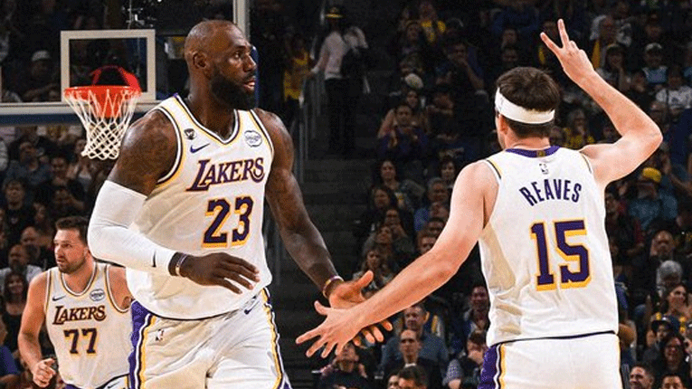 Лос Анџелес лејкерс триумфираше со 129-101 на гостувањето кај Голден стејт и ја зачини убавата вечер за нивните најдобри играчи Лука Дончиќ и Леброн Џејмс.