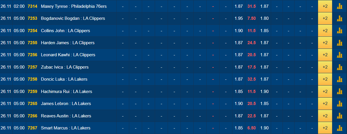 Во понудата има и точно 30-мина кошаркари за играта „плус-минус“ поени. Во дербито на Лос Анџелес, Лука Дончиќ да биде „во плус“ мора да постигне барем 33 поени. Границата за Леброн Џејмс е на 20,5 поени. На спротивната, кај Клиперс за Џејмс Харден границата е на 24,5 поени, а Каваи Ленард да биде во плус мора да биде барем со 21 поени.