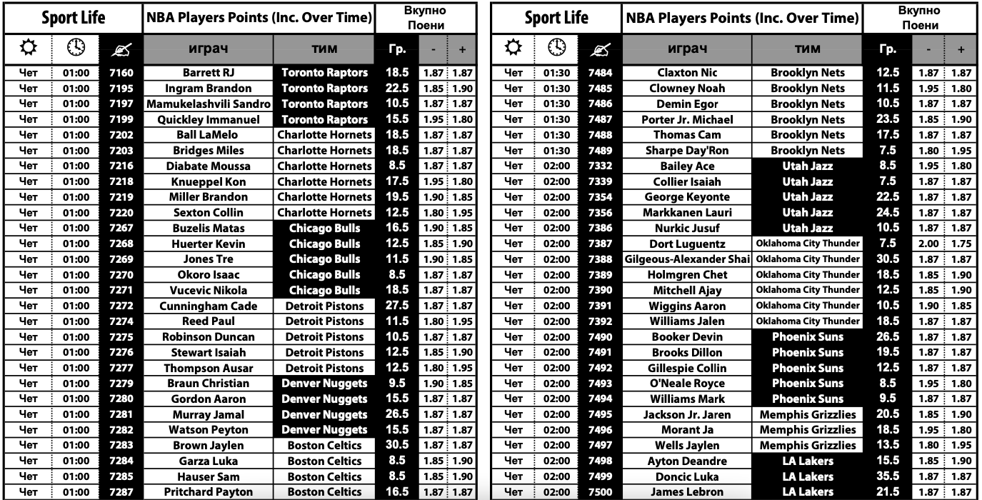 Во богатата понуда на Sport Life за натпреварите од НБА лигата има и над 100 кошаркари за играта „плус-минус“ поени. Комплетната понуда може да ја најдете на следниов ЛИНК.