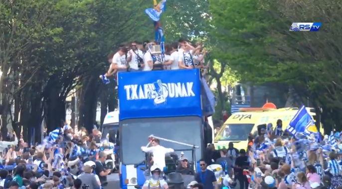Еуфоричните навивачи на Сосиедад од 2020 година чекаа да се израдуваат на еден голем пехар, а и пред шест години тоа беше трофејот во Купот. Во својот град фудбалерите качени на сино-бел автобус без покрив ги поздравуваа навивачите кои беа собрани низ улиците на Сан Себастијан, покажувајќи го освоениот пехар.