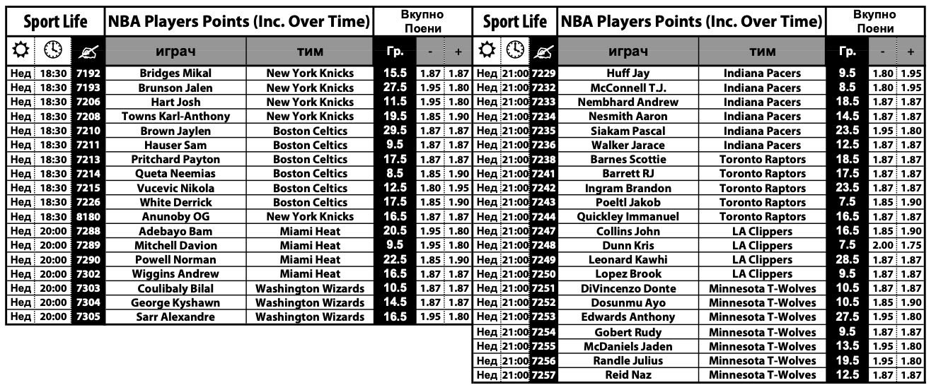 Ако се погледнат квотите во Sport Life лесно се доаѓа до заклучок дека честа на гостите ќе ја бранат кошаркарите на Мајами, додека на останатите три натпревари фаворитската улога ја имаат домашните екипи.