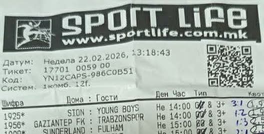 Тикетот уплатен во стилот „стави ги за 50 денари нека трчаат“ има погодено квоти од 1.67 до 2.70 и е уште еден доказ дека во Sport Life може да се добијат големи суми со мал влог.