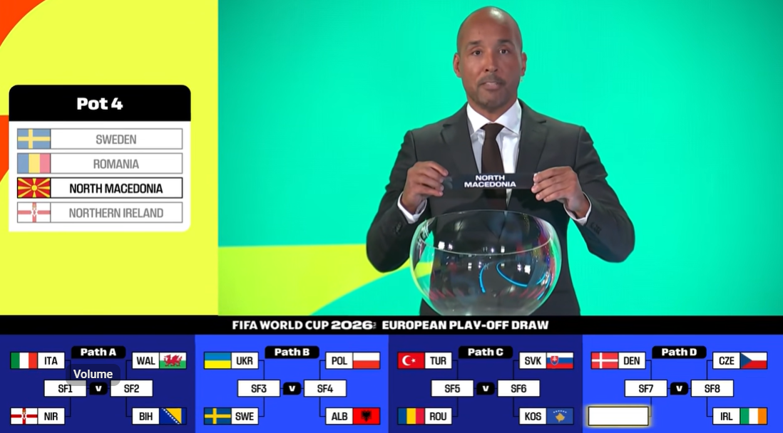 Македонската фудбалска репрезентација ќе игра против селекцијата на Данска во првиот бараж-меч за пласман на Светското првенство во 2026 година беше одлучено на денешната ждрепка во Цирих.