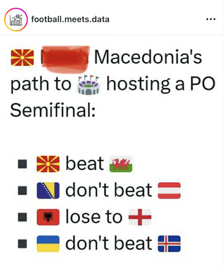 Сепак, постои опција во која Македонија може да дојде до ситуација да игра на домашен терен во баражот, но тоа да се случи мора да бидат исполнети неколку услови. За Македонија да дојде во ситуација да биде домаќин на првиот бараж меч, потребно е нашата репрезентација да стигне до победа на гостувањето во Велс.