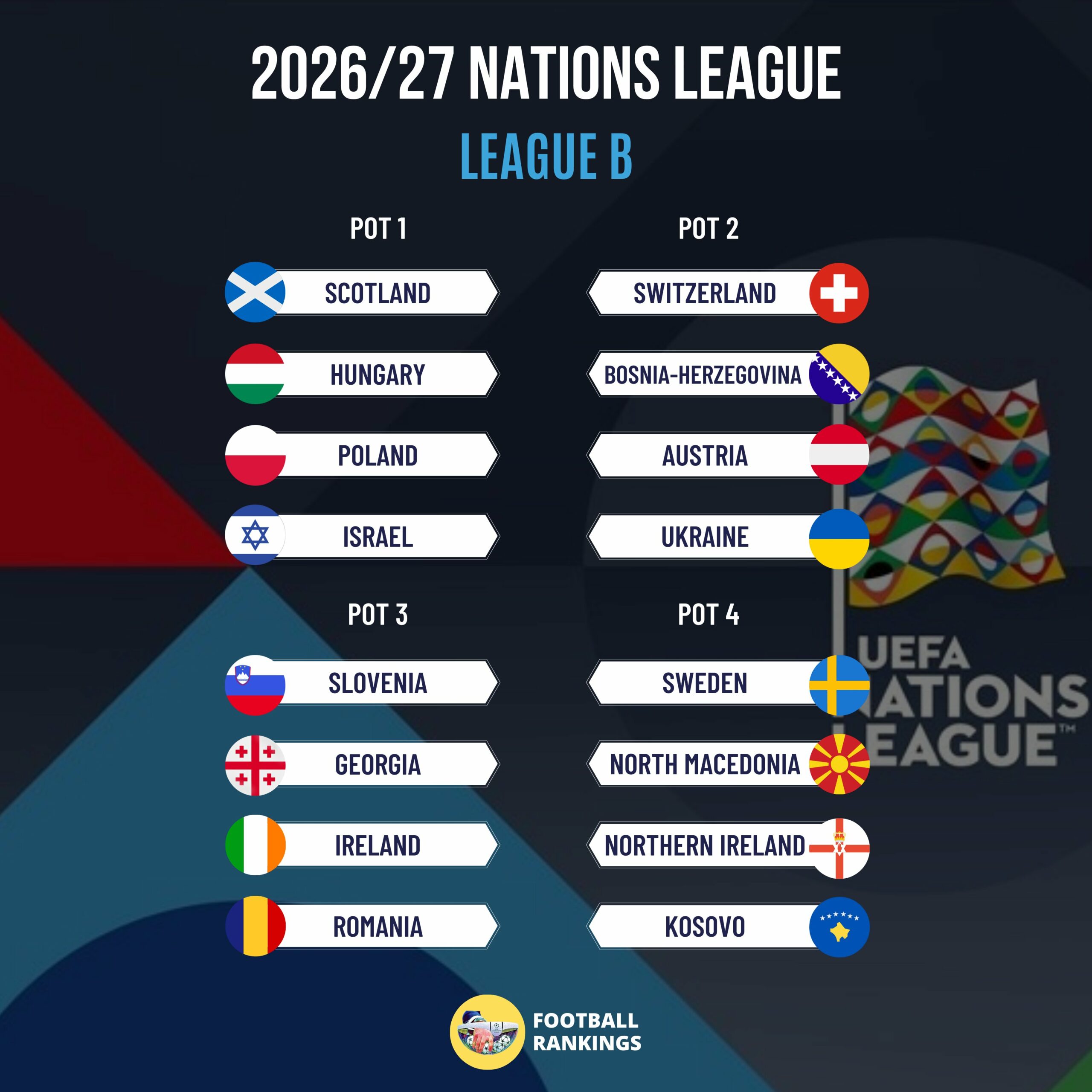 Фудбалската репрезентација на Македонија на 12 февруари во Брисел ќе ги дознае имињата на противниците со кои ќе се соочи во новата сезона од Лигата на нациите, во која Црвено-жолтите првпат ќе играат во Лигата Б, која е втора по квалитет.