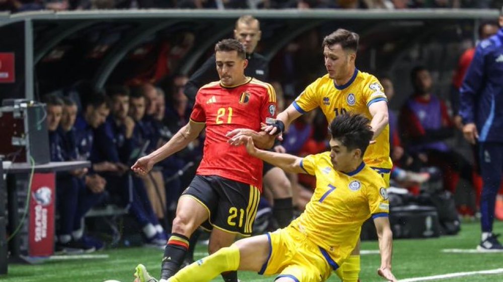 Репрезентацијата на Белгија ја пропушти првата меч-топка и ќе почека до вторник за пласман на Светското првенство 2026. Најголемиот фаворит во нашата група одигра само 1-1 на гостувањето кај Казахстан и останува лидер со 15 бода, два повеќе од Македонија во пресрет на последното коло.