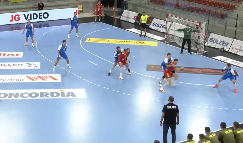 Украина подобро го отвори мечот и од стартот поведе со 5:2, а потоа во текот на целото прво полувреме константно ја одржуваше предноста, а по 30 минути, Македонија губеше со 17:13.