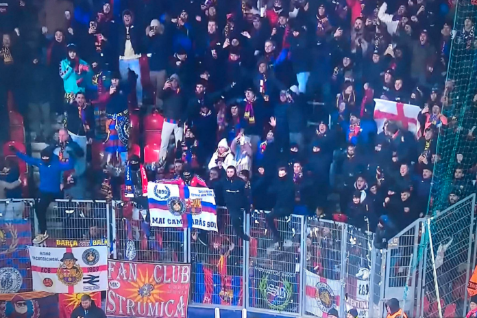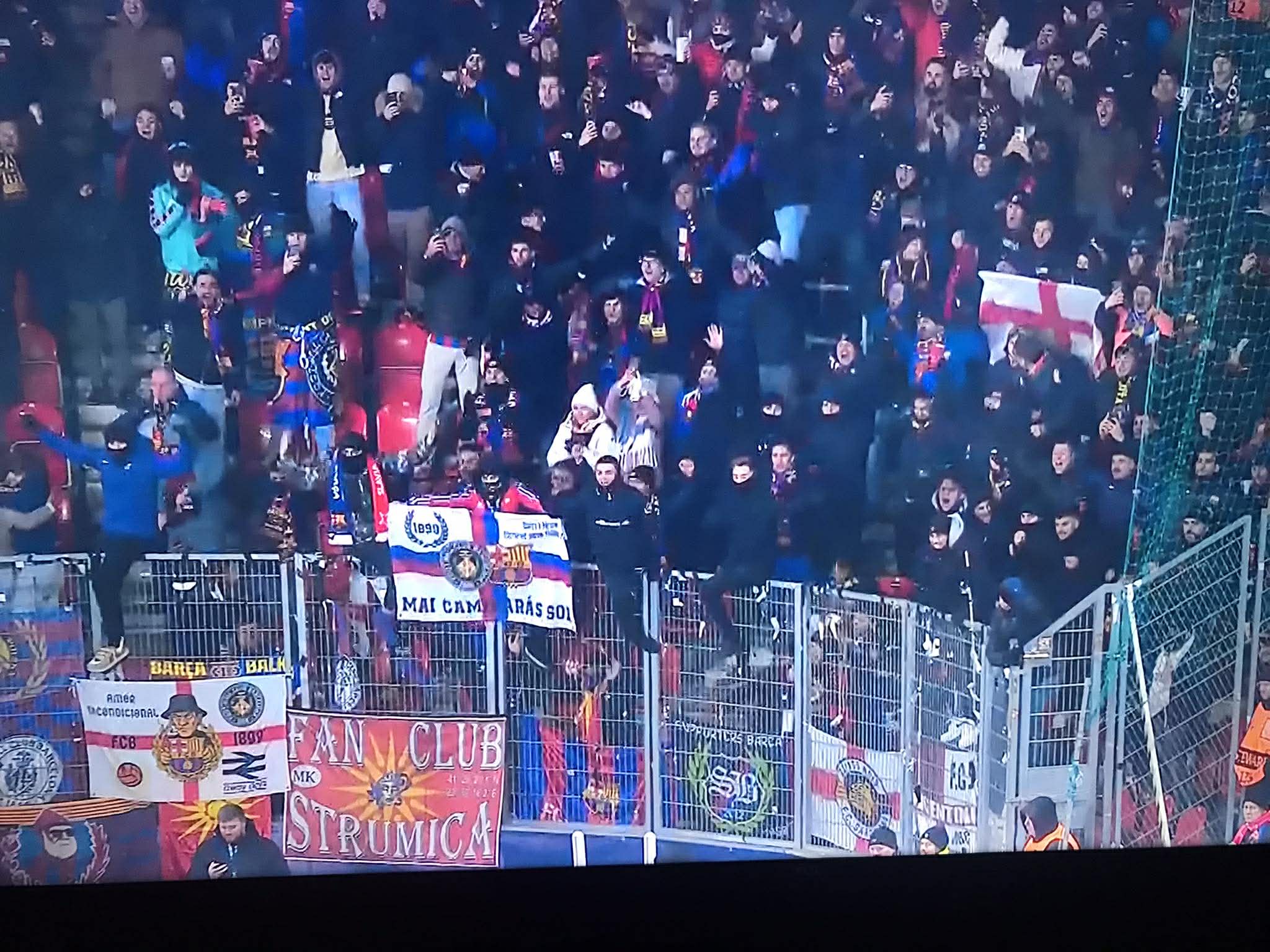 Десетици Македонци кои се големи симпатизери на каталонскиот гигант беа на трибините на стадионот во Прага и се радуваа, а на трибините стоеја македонските знамиња и препознатливиот транспарент „Фан клуб Струмица“.