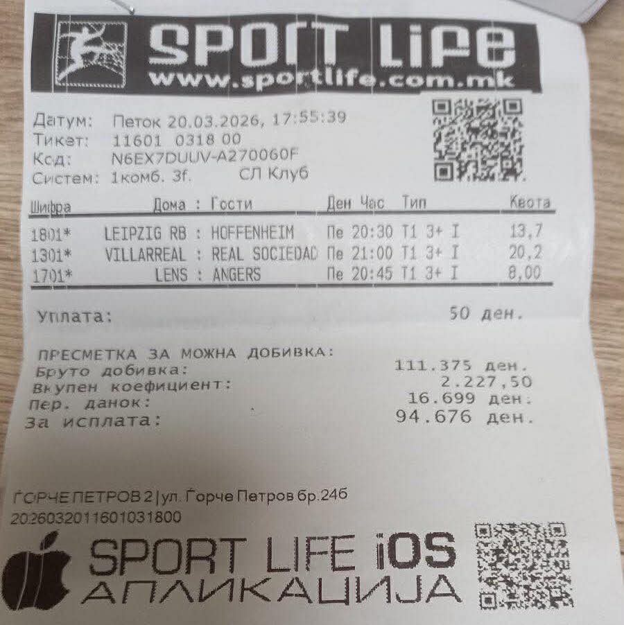 Малиот влог и големите квоти во Sport Life секогаш се добитната комбинација, а така беше и изминатиот викенд. Доказ за тоа се одлично одиграните тикети во Крива Паланка и Ѓорче Петров, кои донесоа големи добивки.