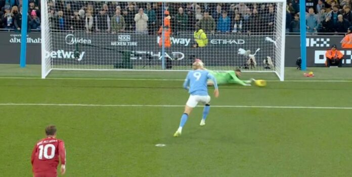 Манчестер сити пропушти голема шанса да дојде до предност на дербито против Ливерпул уште во раната фаза од натпреварот. Беше досуден пенал за Граѓаните, а најстрогата казна ја изведе Ерлинг Халанд.