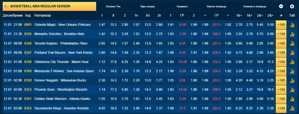 Полноќниот експрес во недела веќе по традиција, стартува уште од 21 часот. Орландо меџик и Њу Орлеанс пеликанс го отвораат вечерашниот серијал, веднаш потоа следува и дуелот меѓу Мемфис гризлис и Феникс санс, а останатите осум меча се после полноќ.