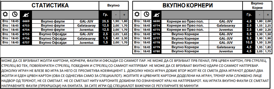 Дури Галатасарај има и подобар скор затоа што во шест средби на овие два клуба, турскиот гигант има два победи, а Јувентус се радувал само еднаш.