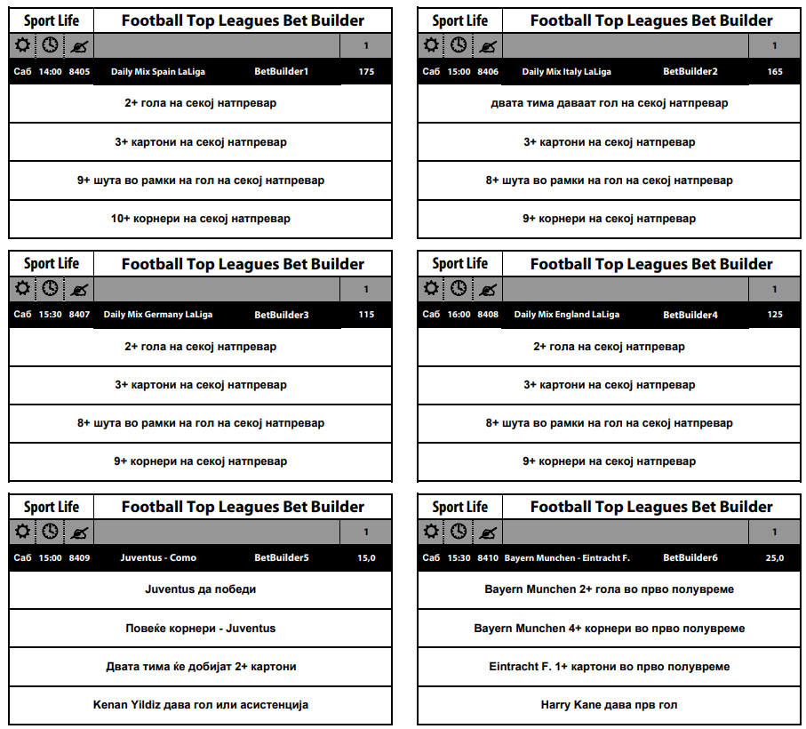 Викендашките Бет Билдер понуди се со посебен предизвик. Дури 12 различни комбинации има, а посебно џиновски се миксовите за најсилните лиги во Европа, каде квотите се движат меѓу 115 и 175!