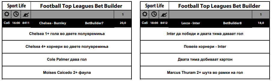 За мечот меѓу Лече и Интер, квотата е 18, а потребно е: Интер да победи и двата тима да дадат гол, Интер да изведе повеќе корнери, двата тима да добијат картон и Маркус Тирам да има 2+ шутеви во рамки на голот.