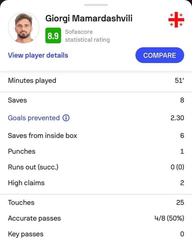 Во последните мигови од првото полувреме на дуелот против Чешка, на асистенција од ВАР собата, беше досуден пенал за Грузија, а сигурен реализатор на најстрогата казна беше токму Микаутадзе.