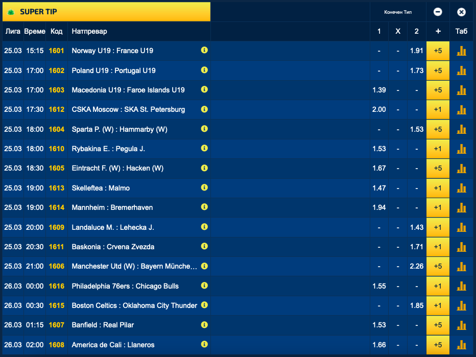 Вкупно во Супер типот за среда може да најдете зголемени квоти на 48 игри.