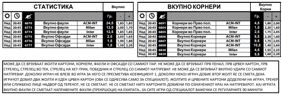 Според квотите, Маркус Тирам е главен фаворит за стрелец на првиот гол, а потоа следуваат Бони, Леао, Еспозито, Пулишиќ, Нкунку… Привлечна е и комбинацијата Милан да победи, а Леао да даде гол, носи квота од точно шест.