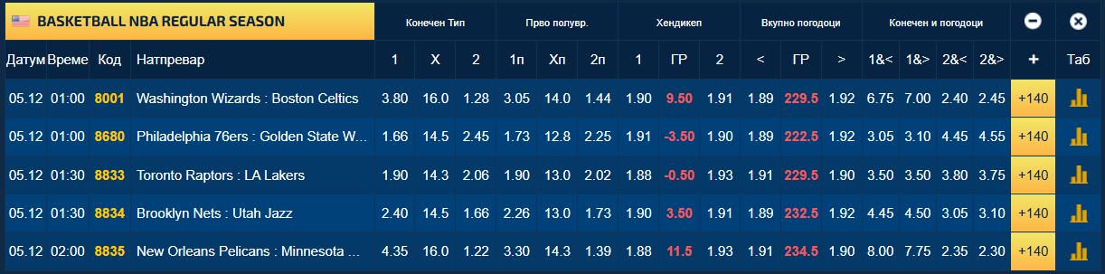 Во НБА-лигата вечерва се играат пет меча, а две го имаат приматот на „сигурици“. Њу Орлеанс е најслабиот тим во лигата кој има само три победи и дури 19 порази, а вечерва на свој терен игра против Минесота. Гостите кои играат добро и победија три меча во низа, сега се големи фаворити за да слават на ова гостување.