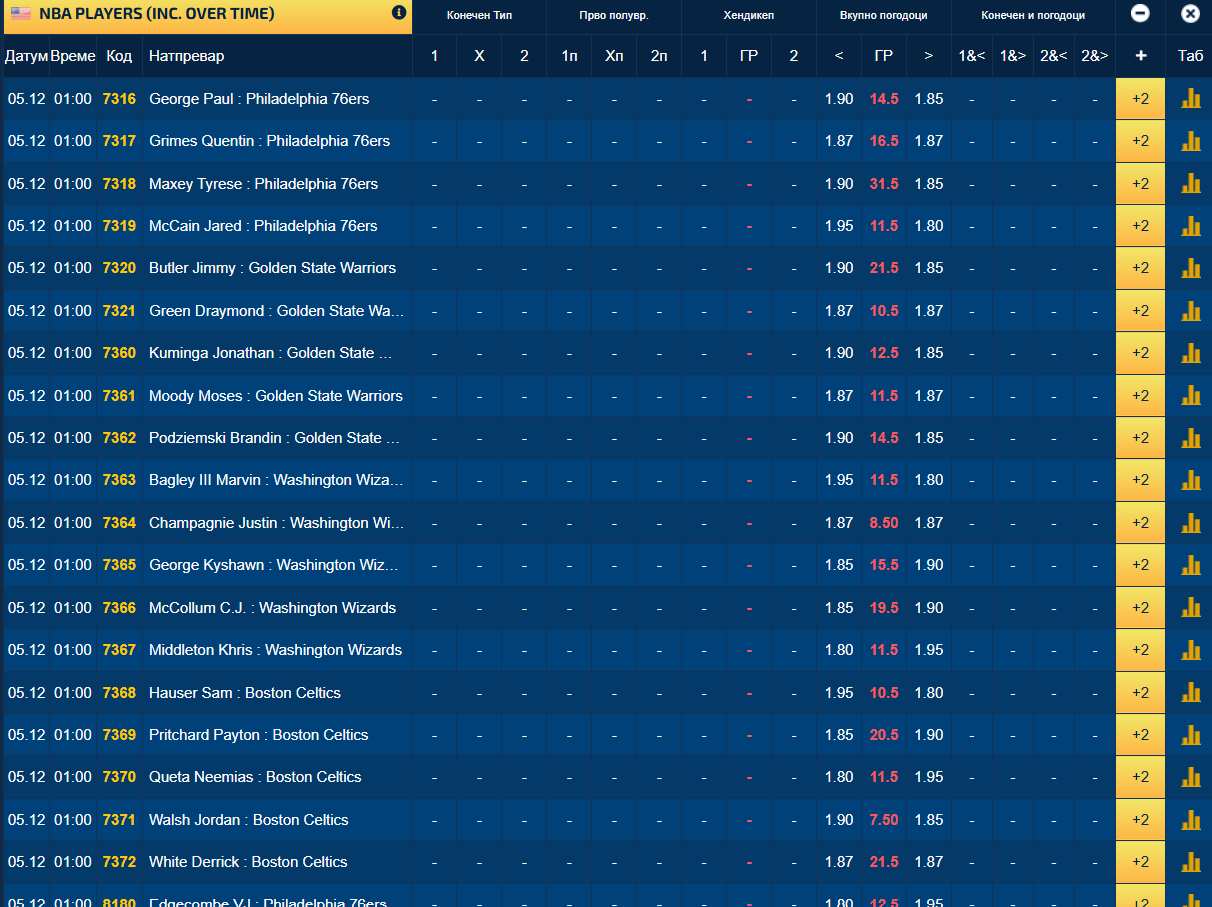 Во понудата за „плус-минус“ поени на играчите кои вечерва треба да бидат на теренот се дури 54-ица кошаркари. Дерик Вајт да биде во „плус“ мора да надмине 21,5 поени, За Леброн Џејмс границата е поставена на 22,5 поени, додека за првата ѕвезда на Јута џез, Лаури Маканен, границата е на 26,5 поени.