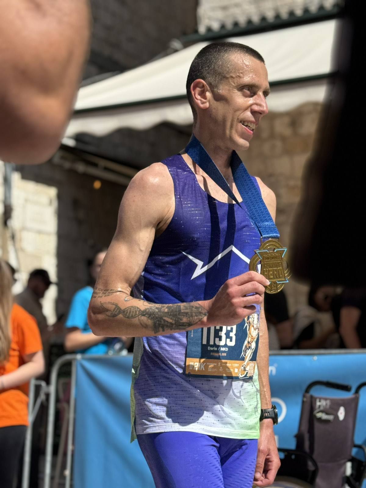 Дарио ја разби конкуренцијата и со македонско знаме во рацете, триумфално мина низ целта, потврдувајќи дека е во топ форма, нешто што покажа неодамна на маратонот во Белград каде во многу силна конкуренција го освои второто место.