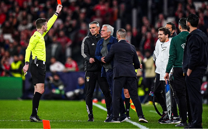 Жозе Мурињо нема да биде на клупата на Бенфика на реванш-мечот против Реал Мадрид на „Сантијаго Бернабеу“. Тоа стана јасно кога португалскиот стратег заработи црвен картон во финишот на првиот меч од нокаут-фазата во Лигата на шампионите.