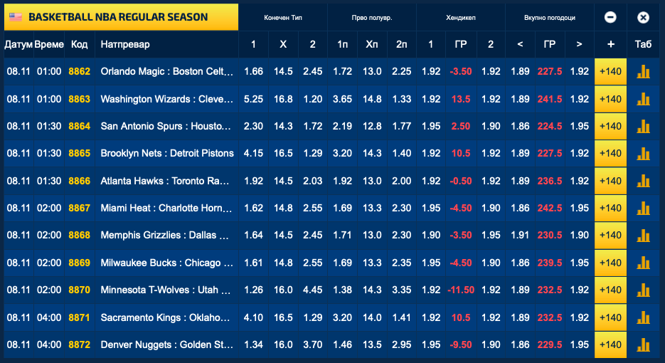 Полноќната НБА понуда содржи 11 натпревари и сите се дел од богатата понуда на Sport Life. На седум од 11-те натпревари фаворити се домашните екипи, додека на останатите четири во таква улога се гостите.