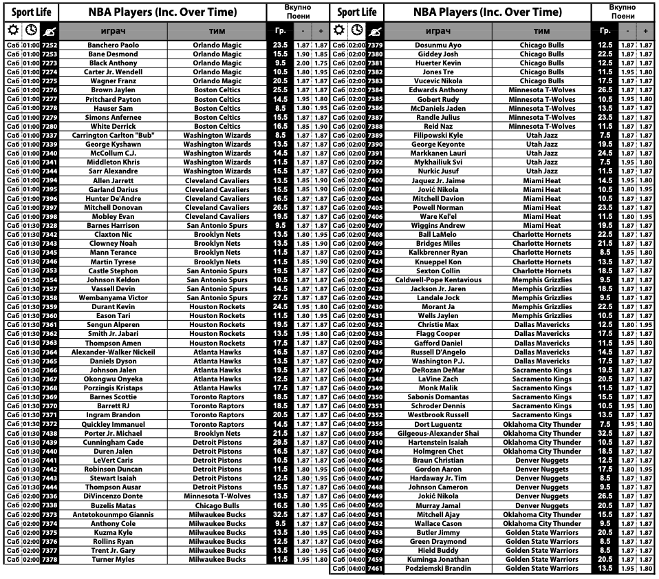 Дел од богатата понуда на Sport Life се и над 100 кошаркари со најпопуларната игра – „плус-минус“ поени. Комплетната понуда може да ја погледнете на следниов ЛИНК.