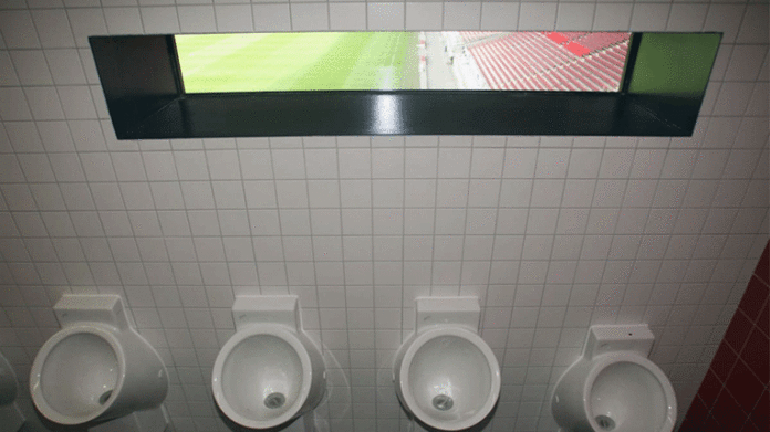 Писоари со поглед на теренот во машкиот тоалет е атракција на реновираната „Мерцедес-Бенц Арена“ во Штутгарт. Има фантастичен поглед и нема ништо да пропуштите од мечот додека сте таму. Во женските тоалети, поглед на теренот е можен само додека ги миете рацете.
