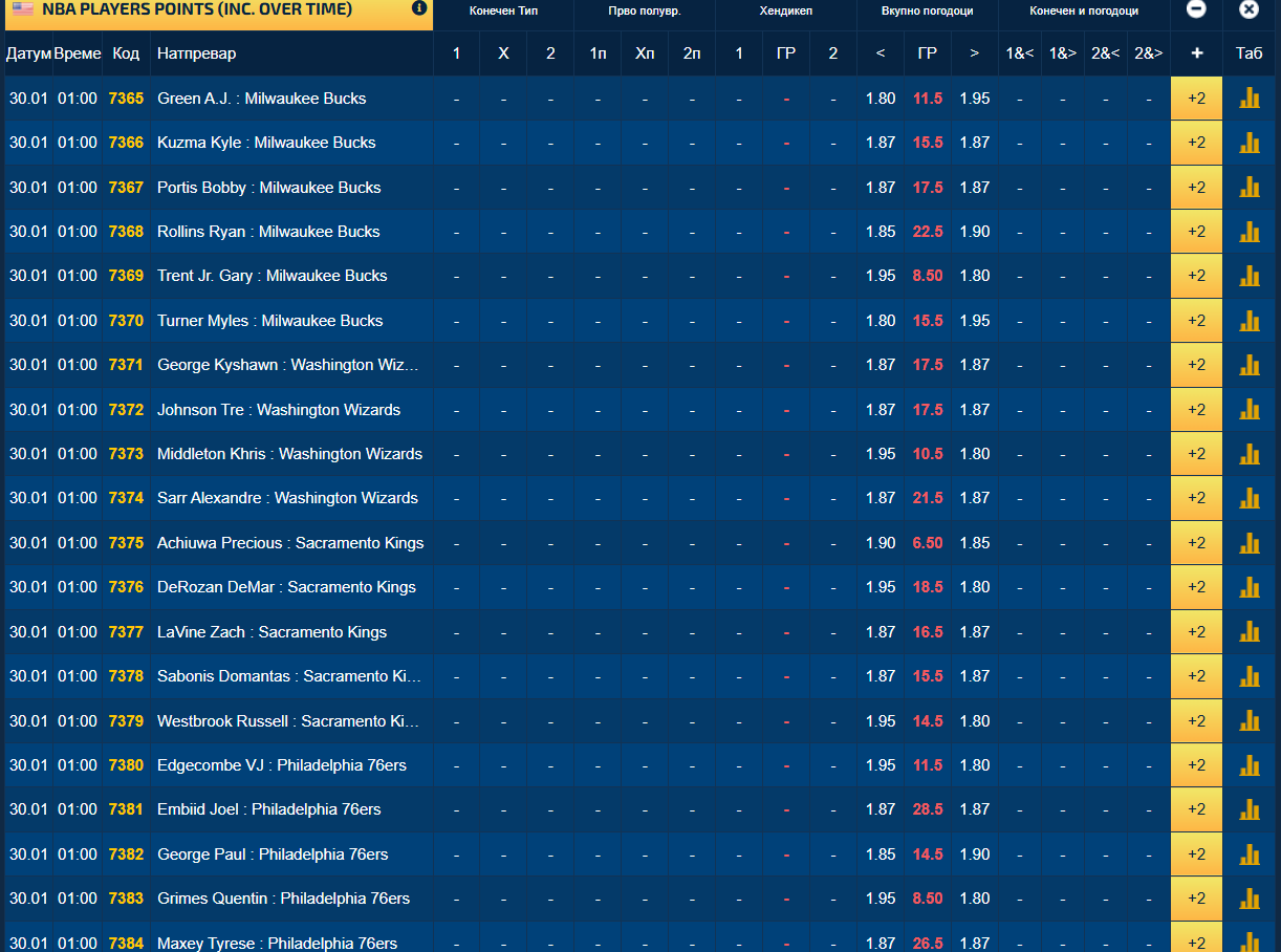 Во понудата за „плус-минус“ поени на играчите кои треба да се појават на НБА-паркетите има над 80-мина кошаркари и тоа е огромна понуда, па експертите сигурно лесно ќе најдат неколку „сигурици“.