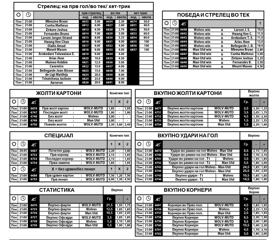 Во морето од привлечни игри во Специјалот се наоѓа и опцјата да се обложите дека Матеус Куња ќе постигне гол. Бразилецот летоска од Вулфс се пресели во редовите на Црвените ѓаволи, но сега не ги оправдува парите вложени во неговиот трансфер. Има постигнато само еден гол сезонава, а супер е квотата дека ќе погоди вечерва на стадионот на кој до пред половина година настапуваше како домашен играч.