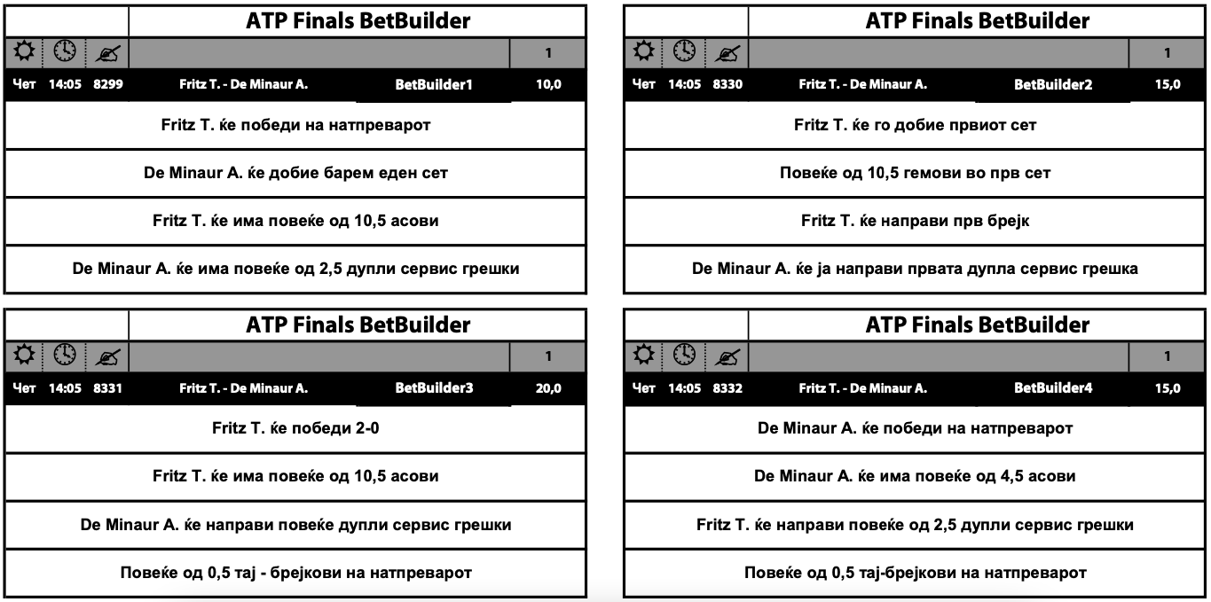Во 14:05 часот играат Фриц и Де Минор, а квотите за петте опции се движат помеѓу 10.00 и 20.00.