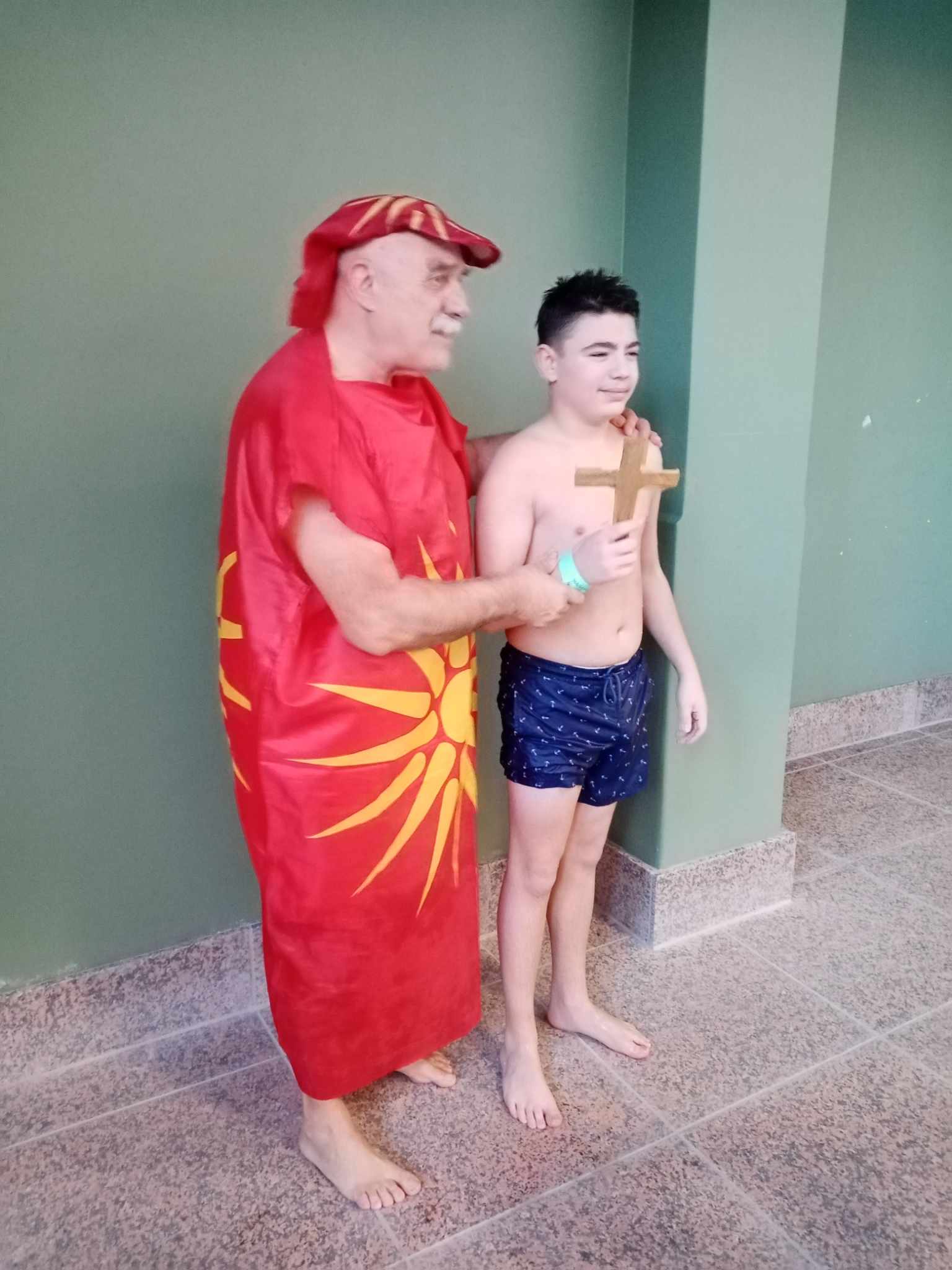Во еден од градските базени во Архус, десетина македонски верници скокнаа во водата на базенот, во обид да го фатат крстот. Од сите, најсреќен беше најмладиот, а тоа е 12-годишниот Марко од Скопје.