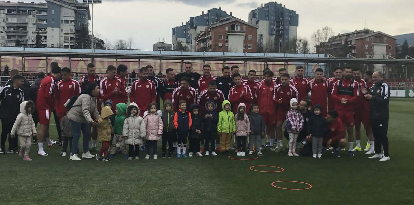 Македонските фудбалери имаа специјални гости на последниот тренинг пред патот во Копенхаген и баражот против Данска. Од Фудбалската федерација на Македонија ги повикаа навивачите да им дадат поддршка на фудбалерите на тренинг, а на терените во Ново Лисиче се појавија и десеттици дечиња кои ги поздравија македонските фудбалери.