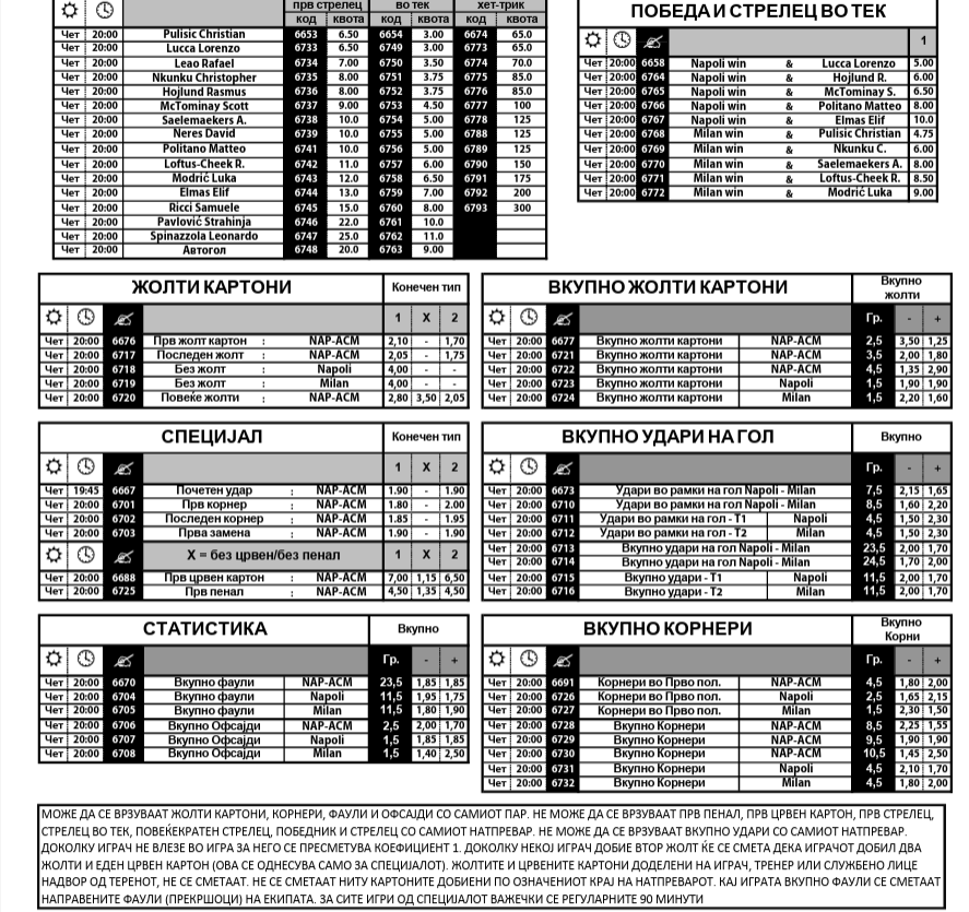 Пулишиќ од Милан и Лоренцо од Наполи се фаворити за прв стрелец, а богата е понудата на играчи на кои може да уплатите дека ќе погодат.
