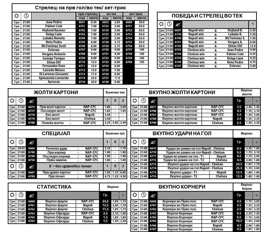 Специјалот на Sport Life е за натпреварот Наполи – Челзи, тука можете да најдете огромен број нестандардни игри и опции за обложување кои секогаш се атрактивни за типување.