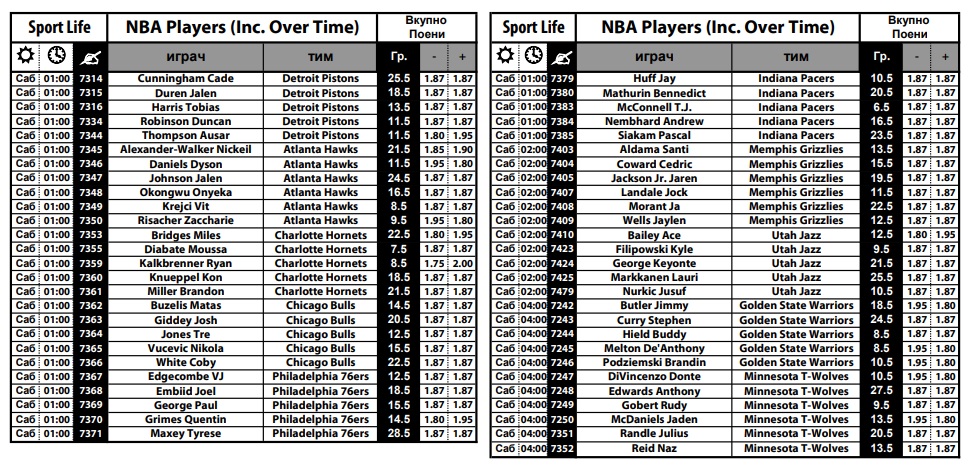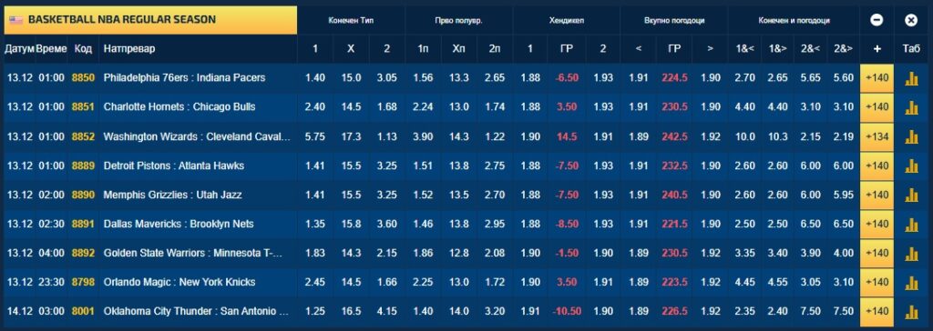 Покрај стандардните квоти, тука е и омилената игра „плус/минус поени“ на индивидуалниот ефект на кошаркарите.