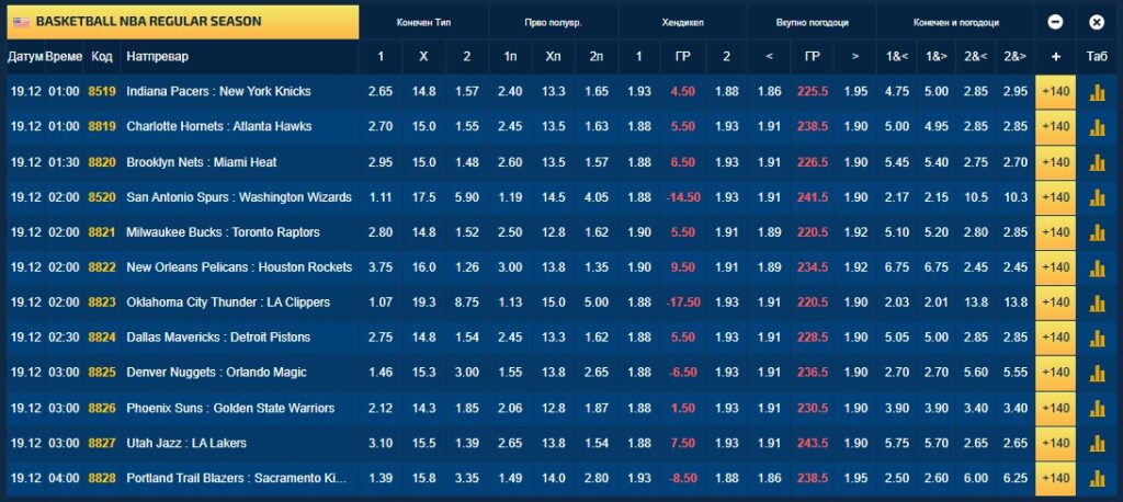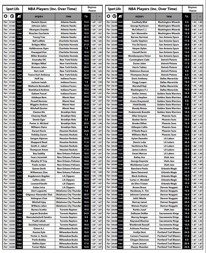Покрај стандардните квоти, има и огромен број кошаркари, вкупно 121, за омилената игра „минус/плус поени“ на нивниот индивидуален ефект.