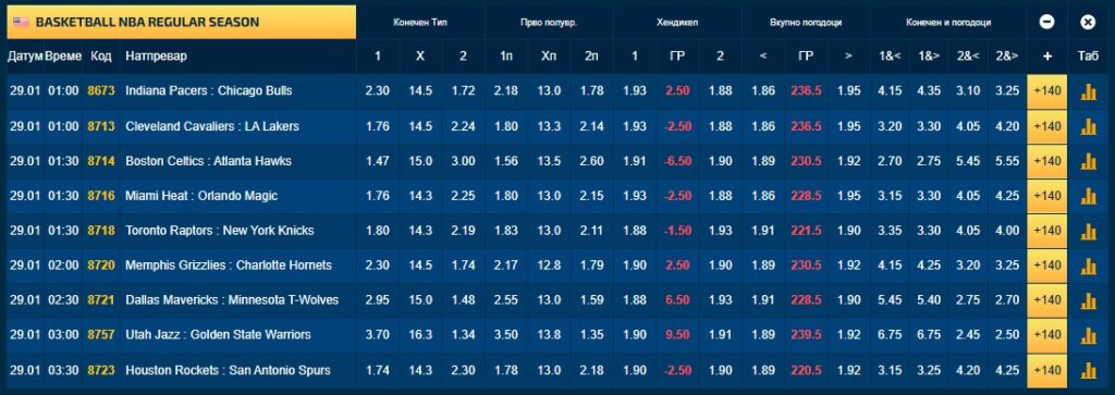 Во НБА-лигата и кај изразени фаворити многу често има изненадувања, а вечерашните дуели се очекува да бидат уште повозбудливи затоа што и квотите сугерираат на голема неизвесност.